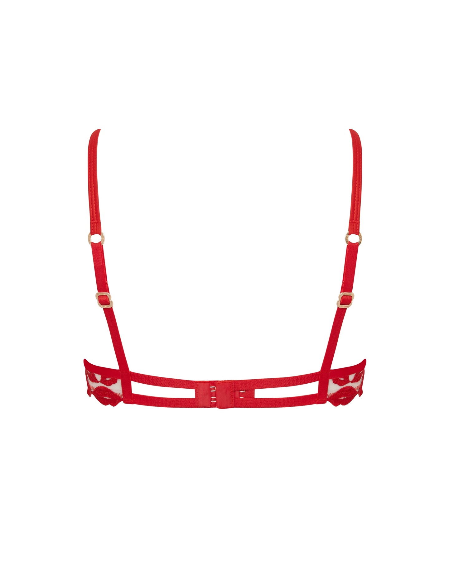 • Balcony bra in rich red with kiss embroidery