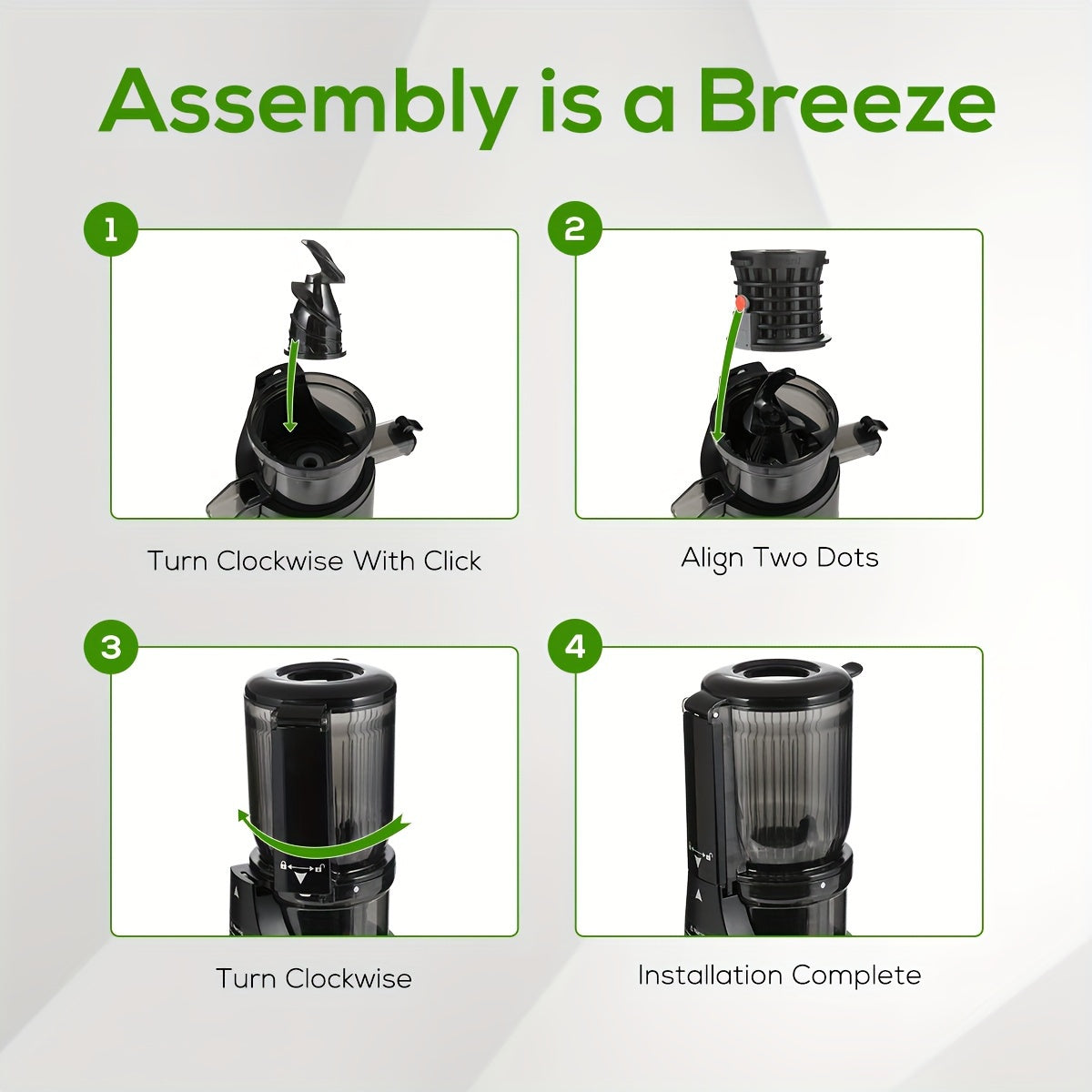 • Quiet motor design – Peaceful juicing while you work, relax, or multitask