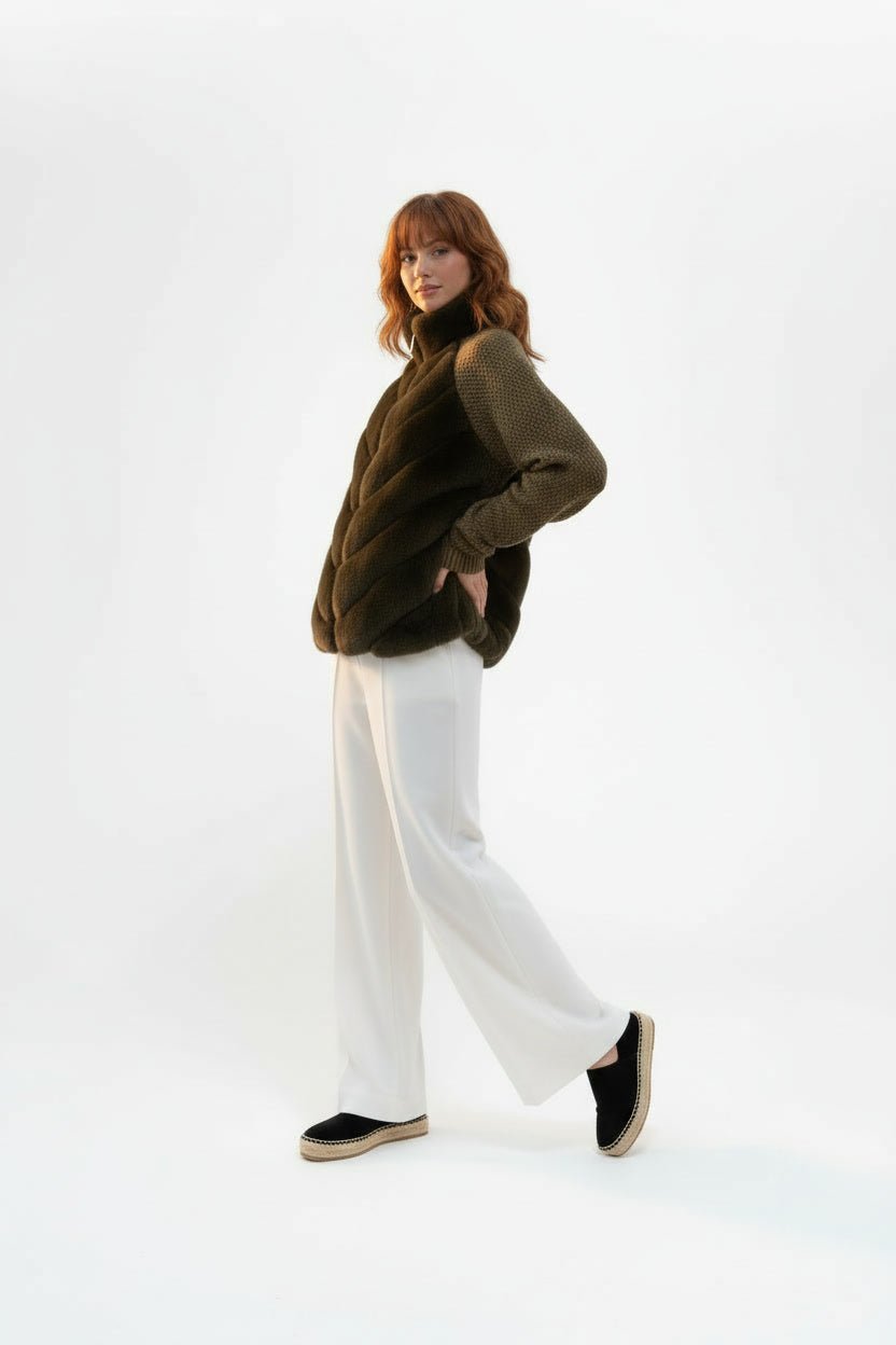 The Marais by Aries x Rose is a winter essential crafted for the woman who carries elegance in everything she does. Featuring a plush fur-panel front and soft knitted sleeves, it blends texture and warmth in a way that feels effortless and elevated. The relaxed oversized silhouette flows beautifully over the body, offering freedom and polish without trying too hard. Whether layered for the season or worn over a simple outfit, The Marais brings a quiet luxury to your wardrobe that is both powerful and unforgettable.