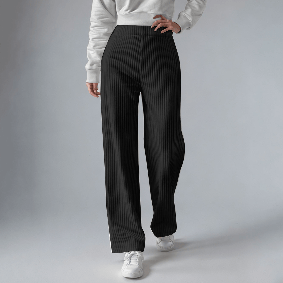 Crafted from ultra-plush ribbed fleece, these wide-leg pants bring unparalleled softness to your everyday routine. Designed with a high-rise waistband and a relaxed fit, they’re perfect for effortless lounging or chic casual wear.
