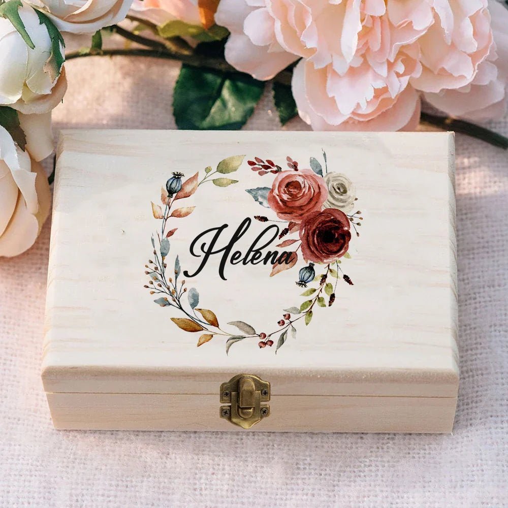 The Everwood Memory Box is the perfect blend of functionality and sentimental value. Thoughtfully designed to store your cherished jewelry and keepsakes, this box features custom engraving for a personal touch, making it an ideal bridesmaid gift or wedding keepsake.