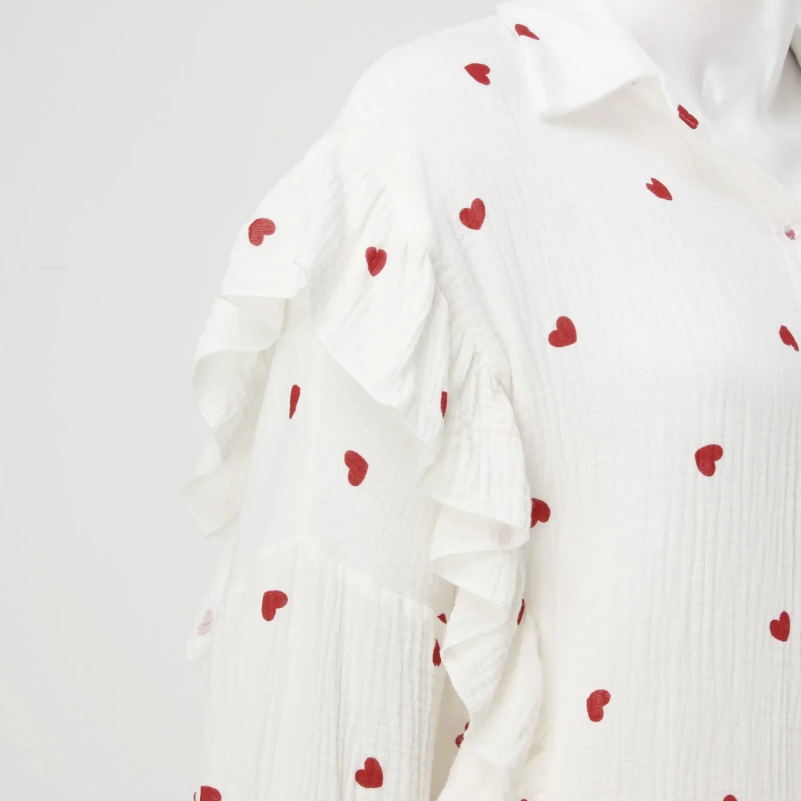Add a sweet touch to your casual wardrobe with this set. The heart motifs and soft material make it ideal for any occasion, from brunch to a beach day.