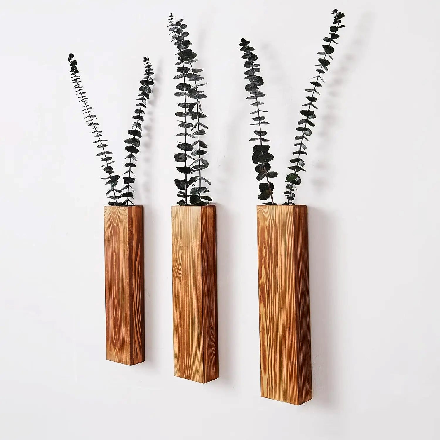 Allora Wall Vase crafted from natural solid wood for a rustic touch. Its minimalistic wall-hanging design and fresh log color tones make it a perfect fit for any room, creating a cozy atmosphere with green plants or dried flowers.