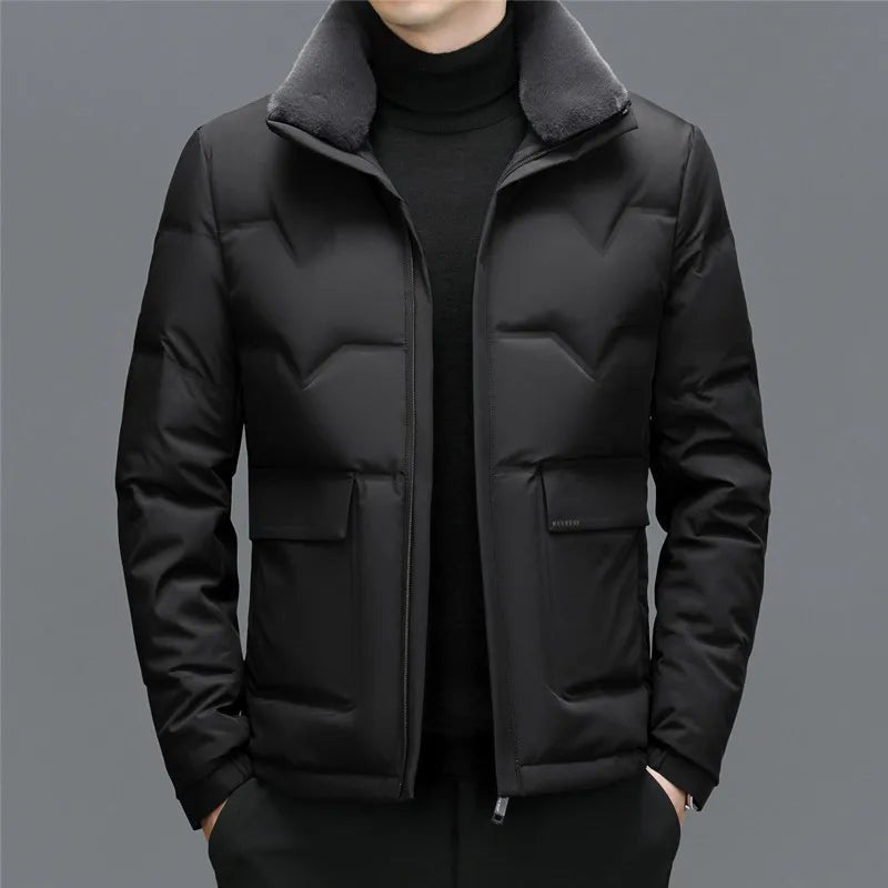 Gear up for winter in style with the Franklin Coat. Designed for warmth and versatility, this casual business coat features a detachable white duck down collar. Embrace the season with this winter essential, ensuring both comfort and a polished look.